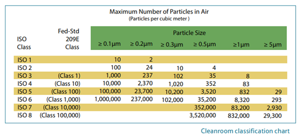 100級(ISO 5)-使用HEPA過濾器并不能保證潔凈室工作臺內(nèi)部將達到100級(ISO 5)。您需要在工作臺內(nèi)保持適當?shù)臍饬鳌?br />