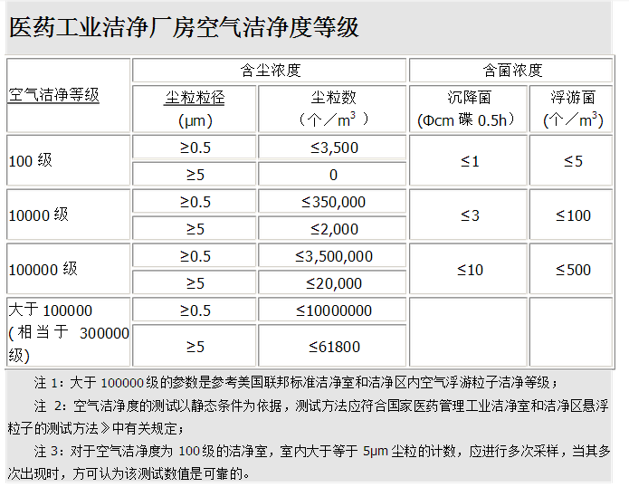 新版GMP中的潔凈度等級(jí)指標(biāo)